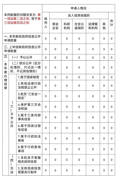 本報告依據《中華人民共和國政府信息公開條例》(國務院令第711號,以下簡稱新《條例》)和《國務院辦公廳政府信息與政務公開辦公室關于印發<中華人民共和國政府信息公開工作年度報告格式>的通知》(國辦公開辦函〔2021〕30號)的要求,由左云縣司法局結合有關統計數據編制。本年度報告中所列數據的統計期限自2024年1月1日起至2024年12月31日止。全文包括主動公開、依申請公開、政府信息管理、平臺建設、監督保障(含《中華人民共和國政府信息公開條例》第五十條第四項規定的各級人民政府“工作考核、社會評議和責任追究結果情況”)等方面內容。本年度報告的電子版可以從左云縣人民政府網站下載。如對本報告有任何疑問,請與左云縣司法局聯系(地址:左云縣綜合技校三樓,電話:0352-3826148,郵編:037100)。