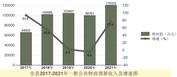 全年全縣一般公共預算收入175333萬元,同比增長77.5%。一般公共預算支出238119萬元,同比增長41.4%。